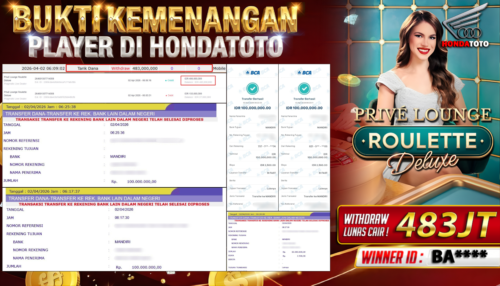 Bukti Kemenangan 02 APRIL 2026 Di PRIVE LOUNGE ROULETTE WD 483 Juta